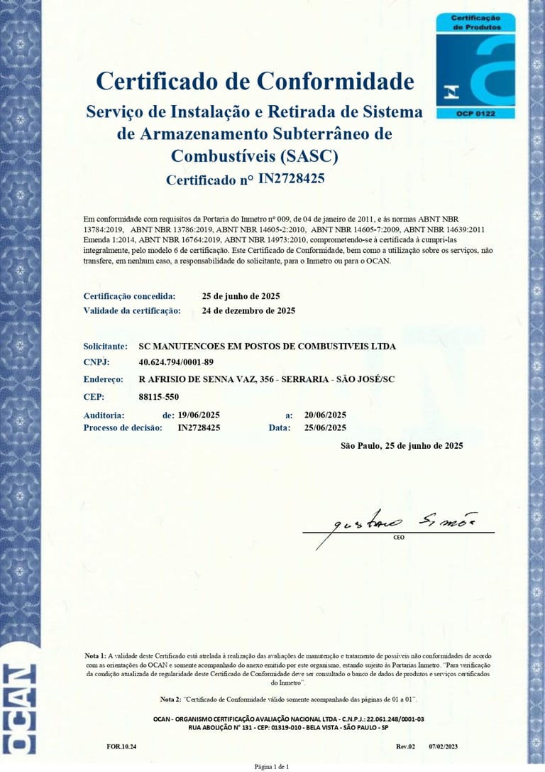 SC MANUTENÇÃO EM POSTOS DE COMBUSTÍVEIS